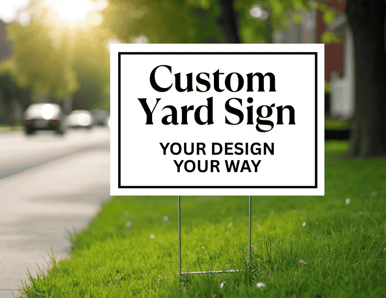 Installation options include H-stakes or wire frames for quick temporary setups, or posts set in the ground for more permanent installations. Perfect for real estate listings, business promotion, yard sales, or election campaigns.